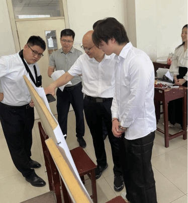 院长李颂华等领导班子成员听取学生毕业设计(论文)自述、答辩专家提问、学生问题回答等答辩过程,特别关注了学生们毕业设计说明书(论文)、图纸、毕业设计作品等毕业设计成果,对学生的专业素养和答辩表现给予了高度评价。