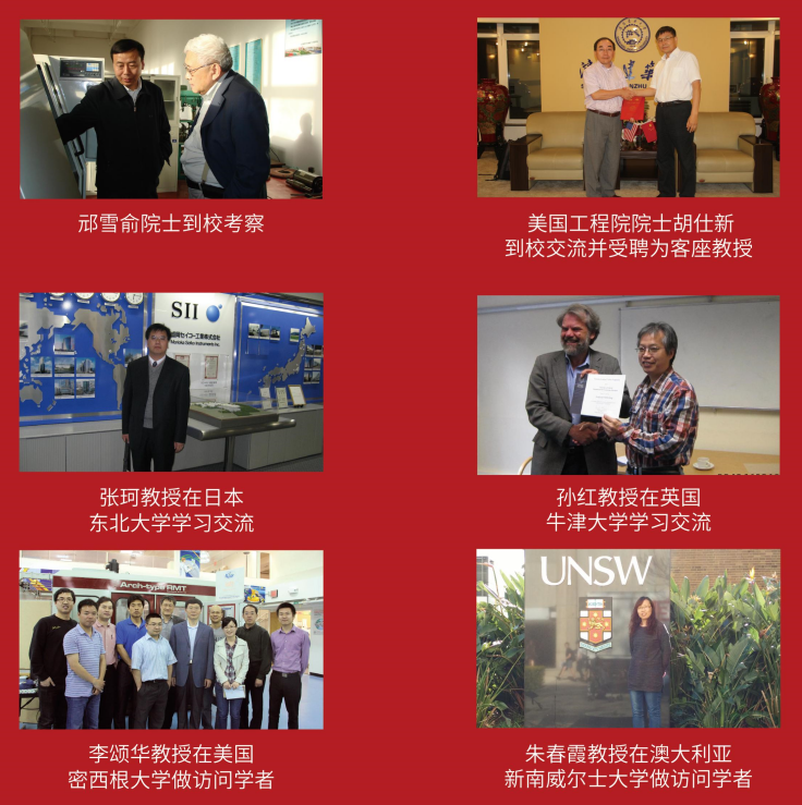学院多次承(协)办国内外学术会议。近五年来,学科共有300余人次参加国际国内学术会议,近30人次获邀在高水平学术会议上作邀请报告,其中10人次以上在国际学术会议上作大会报告。多名教师作为访问学者多次到美国密西根大学、美国迈阿密大学、日本东北大学、德国柏林工业大学、德国斯图加特大学、澳大利亚新南威尔士大学、罗马尼亚特来西瓦尼亚大学等国际知名大学进行学术交流。