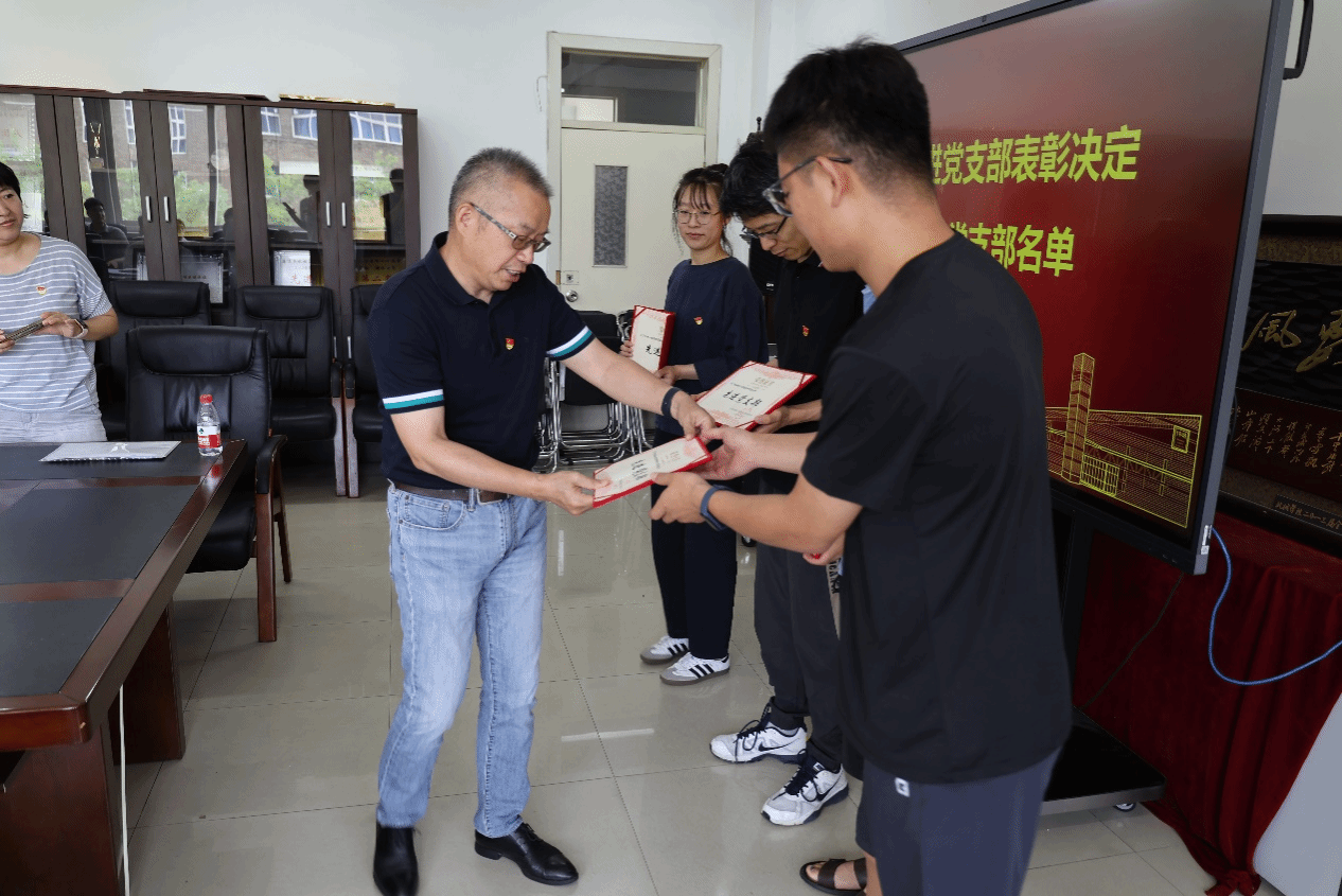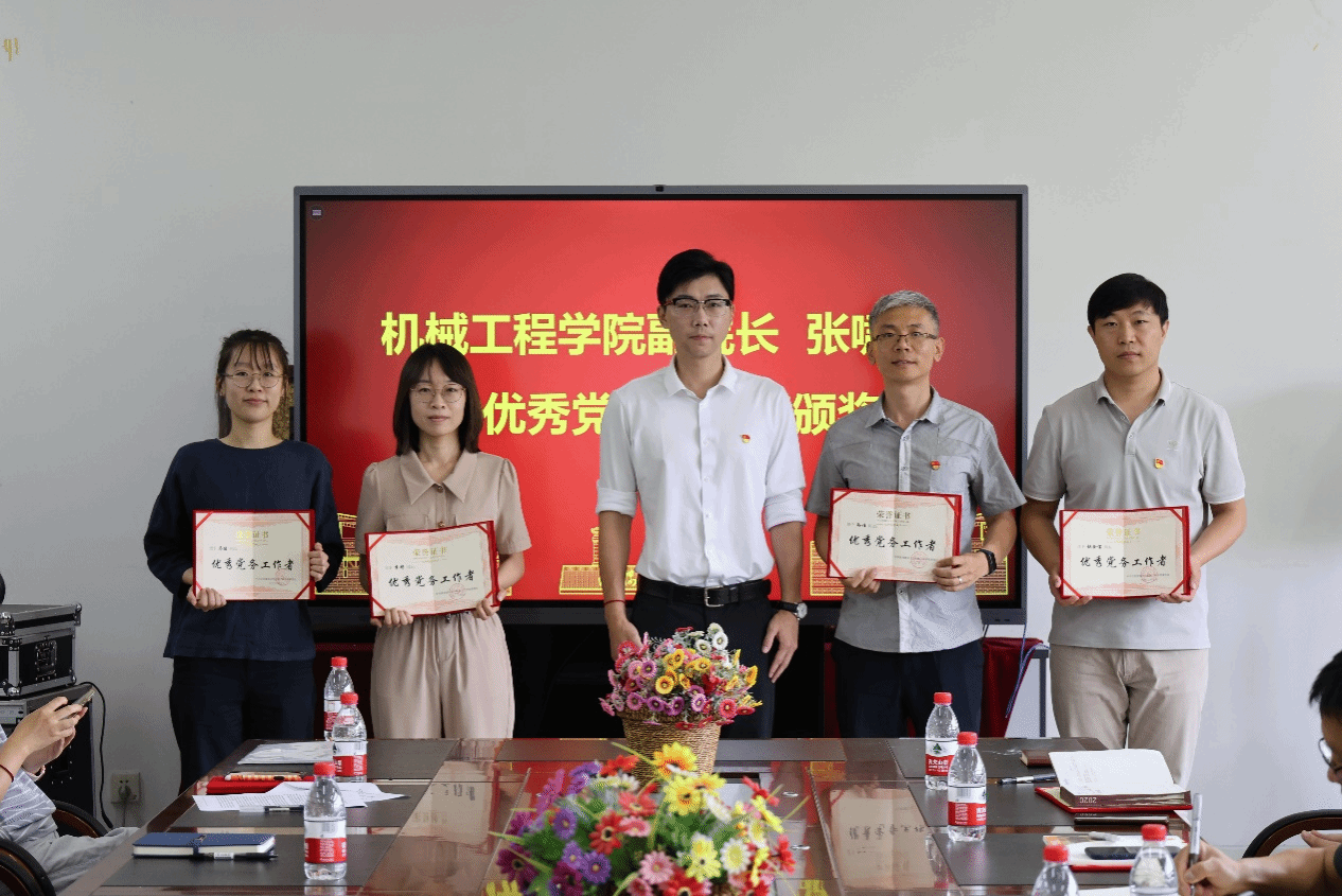 田野分别宣读机械工程学院《2022年度民主评议优秀党员表彰决定与优秀党员名单》、《先进党支部表彰决定与先进党支部名单》、《优秀党务工作者表彰决定与优秀党务工作者名单》、《优秀共产党员表彰决定与名单》,并由与会领导分别给获奖师生和集体颁发获奖证书。
