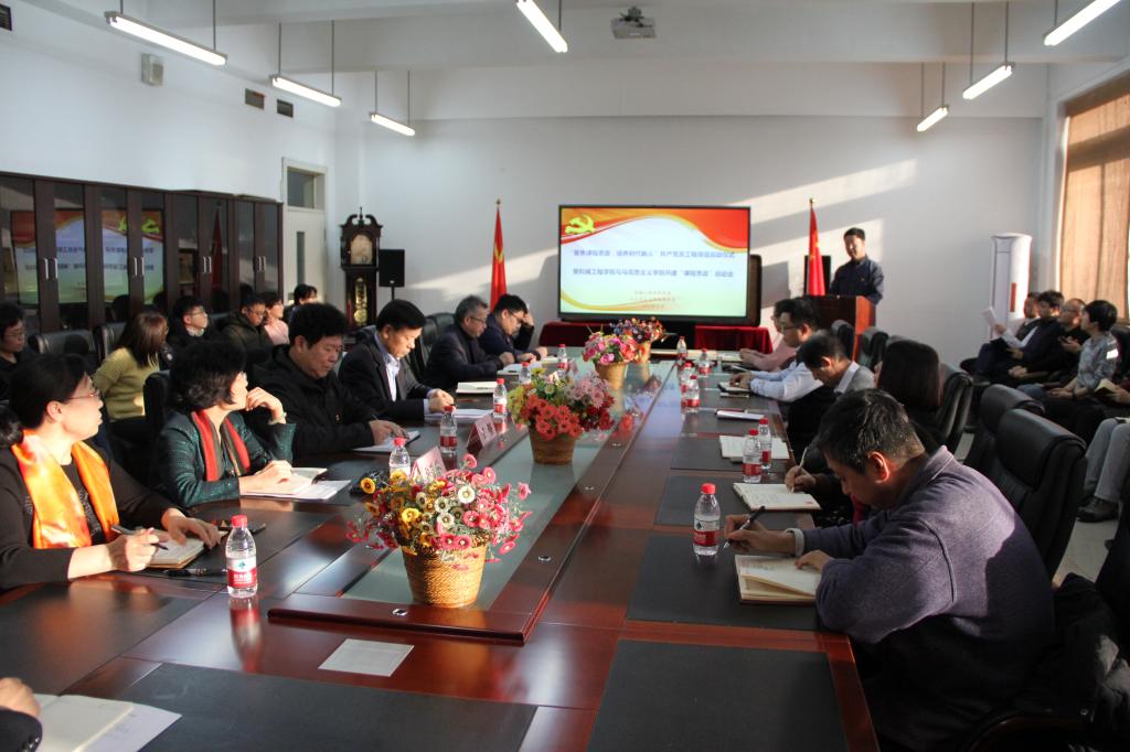 最后,学校党委书记董玉宽发表讲话。他对机械工程学院与马克思主义学院共建“课程思政”举措给予了充分的肯定,认为共建活动体现了工作格局新、依托项目新、共建模式新等特点,也为正在进行的辽宁省教研教改项目《地方工科院校专业思政、课程思政教学模式研究与实践》提供了必要的支撑。他指出:进一步开展好“课程思政”建设工作,首先要抓好教师这一关键主体,教师的育人意识和育人水平直接影响着“课程思政”的效果;其次要抓好专业课程这一重要载体,将思政内容贯穿于专业教育课程的教学大纲、教学目标、授课计划、培养方案、教案设计等各个方面,以课程规划制定促进“课程思政”建设。他最后强调,在“三全育人”工作中,要落实党委主体责任,推进“课程思政”建设,学校党委在工作格局上要起到统一领导作用,切实担负起新形势下高校思想政治工作的政治责任、组织责任和落实责任,真正落实好立德树人根本任务,以取得积极成效。