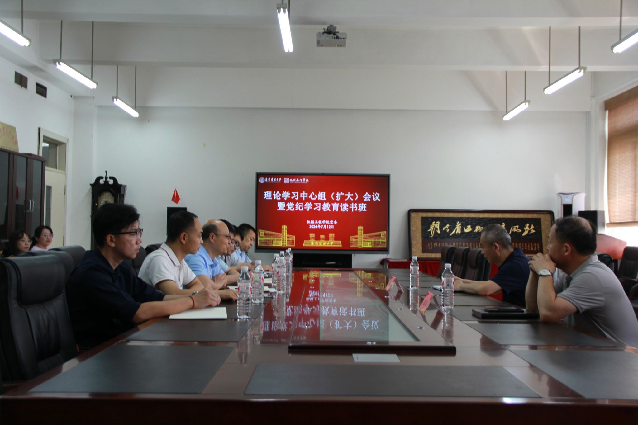 7月12日下午,机械工程学院党委召开党委理论学习中心组学习(扩大)会议暨党纪学习教育第五期读书班,深入学习习近平总书记重要讲话精神、新修订的《中国共产党纪律处分条例》。学校党委常委、纪委书记、监察专员何通海到场督导并讲话。学院党委理论学习中心组成员、党委委员、党支部书记、系室主任、组织员等参加了会议。会议由学院党委书记许占利主持。